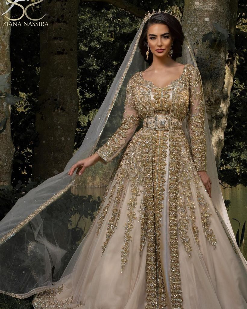 Batı düğünlerinde görüldüğü gibi, gelin tüm etkinlik için sadece beyaz bir elbise giyerken. Fas’ta gelin dört veya beş kıyafet giyiyor. Her şeyden önce gelin beyaz süslü geleneksel ‘Kaftan’ ile giriyor; sonra bir Berberi kıyafeti haline gelir. Damat kıyafetlerini de değiştirir. Bundan sonra gelin, ülkenin kuzey bölgesini temsil eden bir kıyafete dönüşür. Sonra, güneydeki ‘Sahraoui’ halkını temsil eden bir kıyafet giyiyor. Bazı düğünlerde Çin ve Hint kıyafetleri de giyilir.